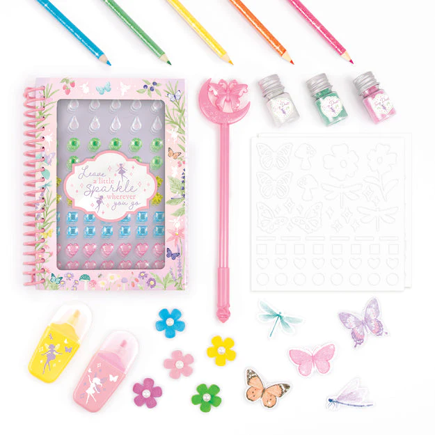Make fairy-tastic crafts and 3D artworks with this complete sketching media set! Get inspired with the fun selection of creative materials. Tweens will have a fairy blast getting creative with the included spiral-bound sketchbook, gem sticker sheets, paper decals, fabric flowers, die-cut double-sided tape sheets, wand pen, highlighters, glitter colored pencils, and bottles of glitter. 5 gem colors included! Simple instructions guide tweens on how to use the adhesive tape to enhance their creations. The wand pen and fairy dust glitter bottles will make them feel like a real fairy as they sketch, doodle, and write! This is the perfect set to gift creative tweens for any occasion.